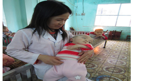 Có lẽ, với chị Chỉnh cũng như các mẹ chăm sóc ở đây, được chứng kiến sự tiến triển, thuyên giảm về bệnh tình của các con từng ngày là niềm vui mừng nhất. Chị chỉ vào cháu có cái tên rất đẹp “Uyên Nhi” mà các chị đã đặt từ khi cháu bị bố mẹ bỏ rơi ngoài cổng trung tâm, nói trong ánh mắt ươn ướt: “Cháu không có mắt, lúc mới vào nửa đầu mềm nhũn. Cháu bị apedan líp với đường mũi nên rất khó thở, chỉ thở được bằng mồm. Mọi người đều rất lo lắng, sợ cháu không sống được bao lâu. Nhưng 2 năm nay thì thấy yên tâm hơn vì cháu đã khỏe hơn nhiều”.