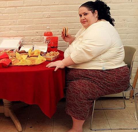 Người phụ nữ 44 tuổi này là người nổi tiếng toàn thế giới và kiếm được 90.000 USD/năm từ những người hâm mộ do họ muốn gửi tiền để xem cô nạp hơn 15.000 calo mỗi ngày qua mạng.