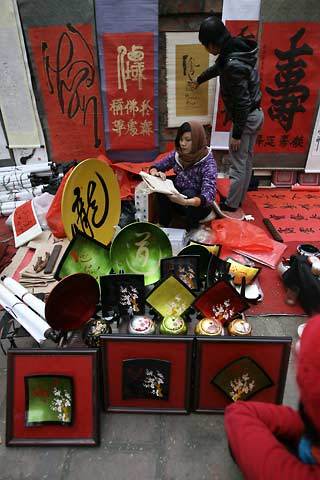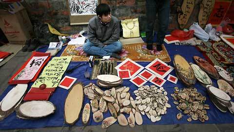 | Không chỉ có đồ lưu niệm viết thư pháp mà có cả những đồ lưu niệm thường thấy ở các quầy bán đồ lưu niệm. |