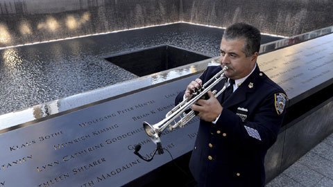 | Một người lính quân nhạc đang thổi kèn để tưởng nhớ các nạn nhân thiệt mạng trong vụ 11/9 cách đây 11 năm. (Ảnh: Reuters) |
