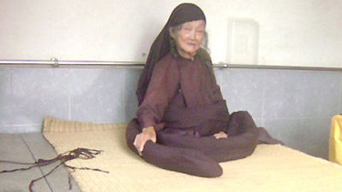 không cắt tóc, gội đầu gần 60 năm nay. Người phụ nữ này đang sống tại chùa Huệ