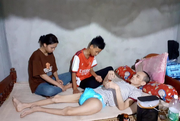 Gần 1 năm nay, anh Lê Đình Quân (41 tuổi, hôn 5, xã Lam Sơn, huyện Ngọc Lặc, tỉnh Thanh Hóa) “sống dở chết dở” vì căn bệnh ung thư xương hành hạ dai dẳng. Thậm chí, anh bị đau đến mức thuốc mooc-phin dùng để tiêm vào người cũng chẳng còn mấy tác dụng.