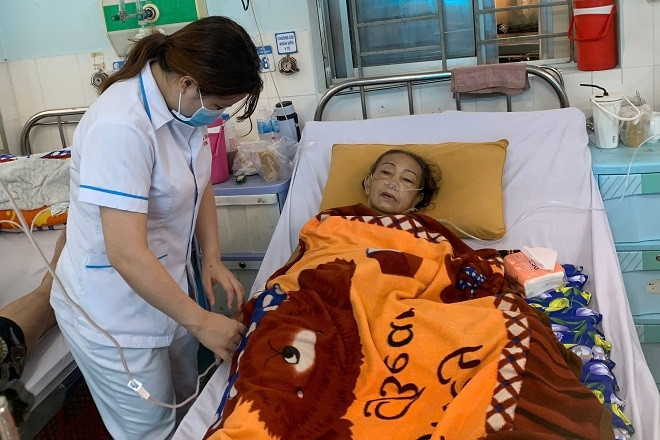 Theo chia sẻ của nhân viên bệnh viện, bà Phúc là một bệnh nhân đáng thương. Nhập viện cuối tháng 9, bà chẳng có người thân chăm sóc. Một nhà hảo tâm biết được hoàn cảnh nên đã quyên góp, đưa bà Phúc vào khám bệnh, không ngờ bà phải nằm điều trị kéo dài, chi phí tốn kém.