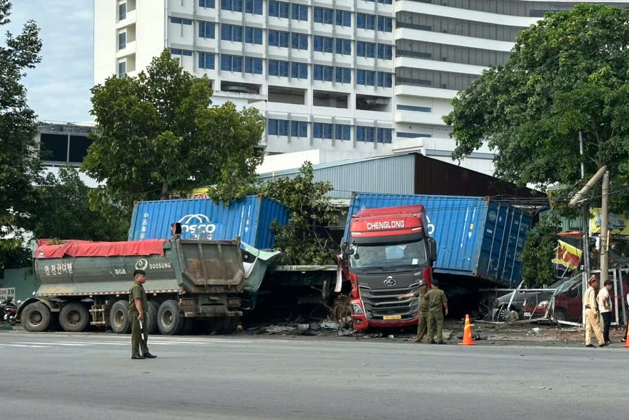 Khi đến Km1031+250 (thôn Nam Bình, xã Bình Nguyên), xe tải bất ngờ tông vào 3 xe máy. Sau đó, ô tô này bị lật nghiêng, trượt vào nhà dân ven đường và tông bà T. (55 tuổi, trú xã Bình Nguyên) đang đứng bán tạp hóa khiến nạn nhân tử vong tại chỗ.
