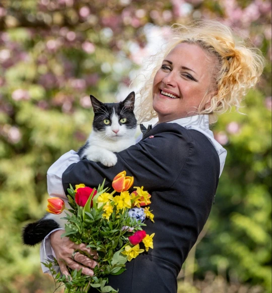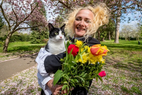 Đám cưới do một người bạn của bà Deborah chủ trì. Chú mèo 5 tuổi được diện một chiếc áo lấp lánh ánh vàng và tham gia cầu nguyện cùng gia đình, bạn bè của Deborah tại công viên vùng Đông Nam thủ đô Luân Đôn (Anh).