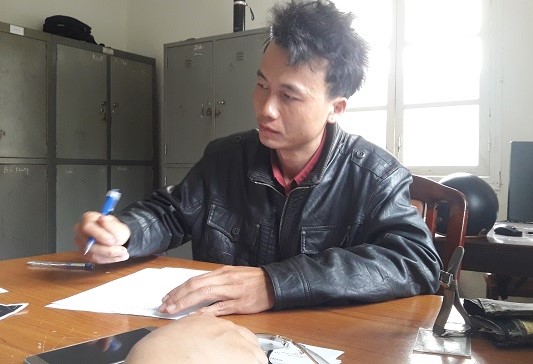 Đinh Mạnh Tài đến đầu thú tại cơ quan Công an. |