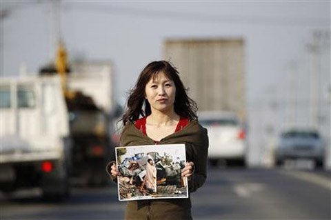 Người phụ nữ trong bức ảnh chính là Yoko Sugimoto, năm nay 29 tuổi. Bức ảnh được chụp vào lúc 7 giờ sáng ngày 13 tháng 3. Khi đó, Yoko đang nhìn về phía trường mẫu giáo nơi cậu con trai bốn tuổi của cô theo học. Gần hai ngày sau trận động đất xảy ra, cô vẫn chưa tìm thấy con trai của mình.