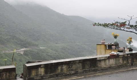 | Dọc đường qua đèo Hải Vân nhiều khóm thờ người tử nạn do tai nạn giao thông mọc chi chít bên đường |