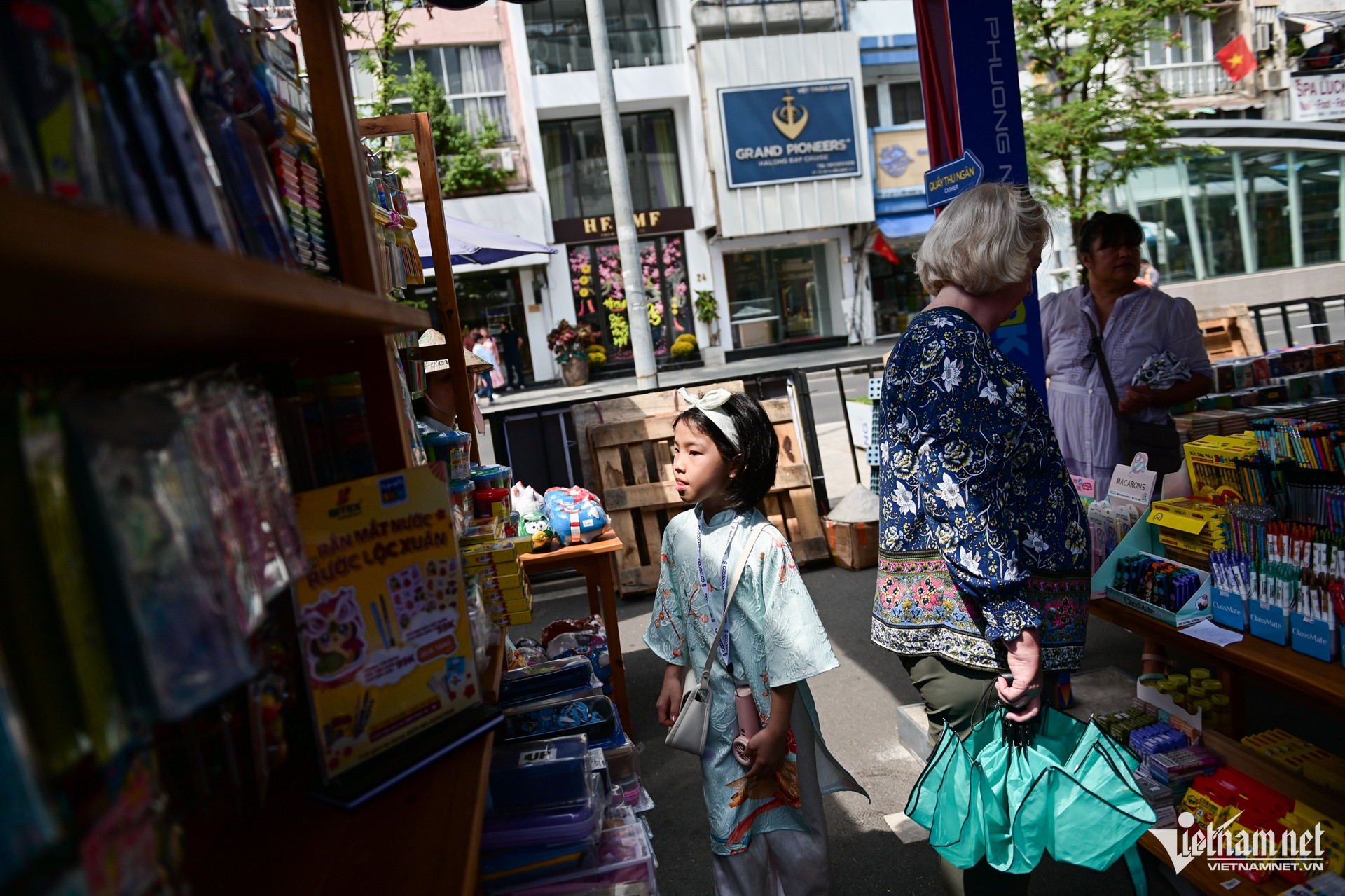 Du khách nước ngoài cũng đến tham quan và tìm hiểu về những tựa sách.