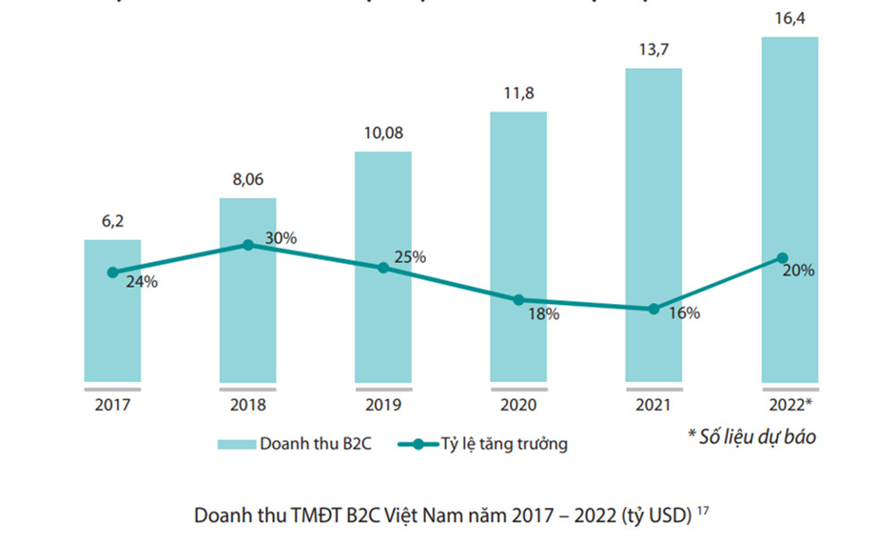 Nền kinh tế số của Việt Nam có tốc độ tăng trưởng nhanh nhất trong khu vực Đông Nam Á, với tổng giá trị hàng hóa (GMV) dự kiến tăng 28%, từ 18 tỷ USD trong năm 2021 lên 23 tỷ USD, nhờ sự tăng trưởng 26% của thương mại điện tử so với cùng kỳ năm ngoái.
