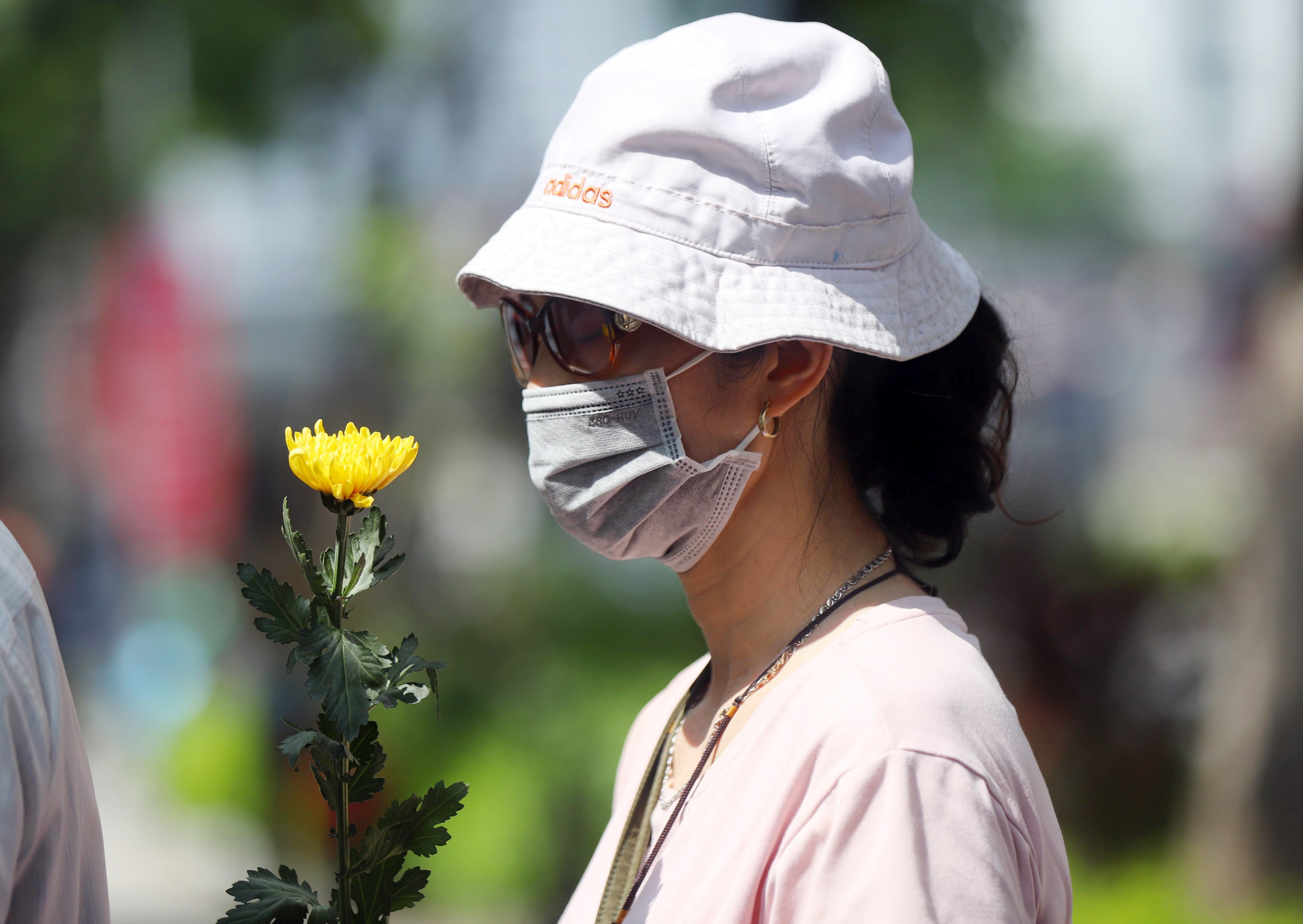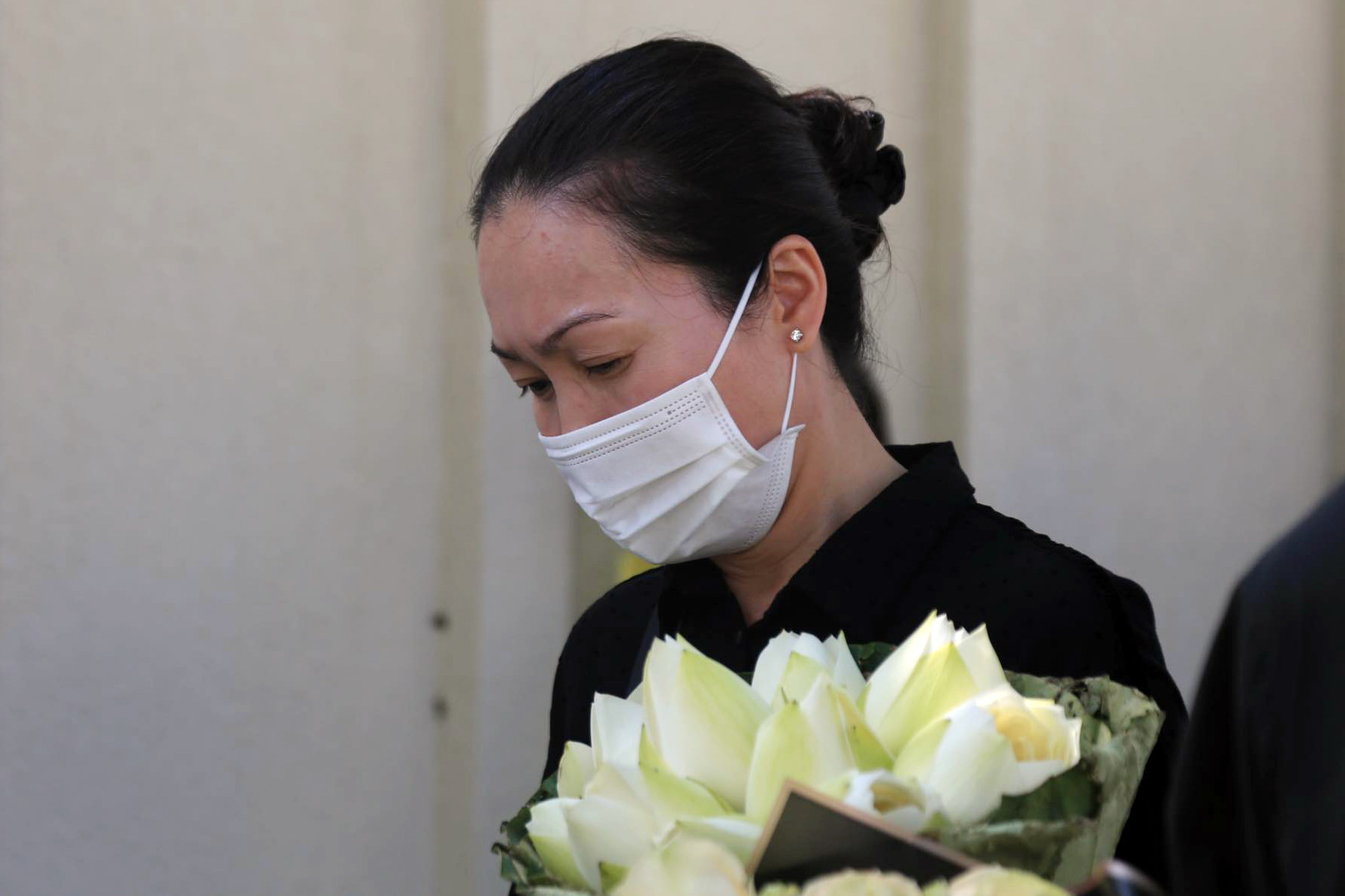 Cúc vàng, sen trắng người dân mang đến... được Đại sứ quán đặt bên di ảnh.
