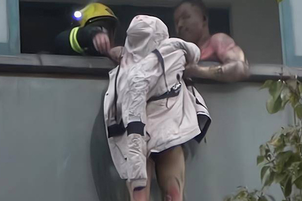 Lửa bao trùm sau lưng, chồng vẫn nắm chặt tay vợ ở ban công