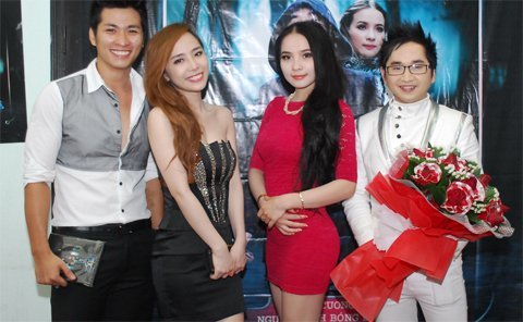 Ca sĩ Quỳnh Nga (váy đen) cũng đến chia vui với Bằng Cường nhân anh ra album mới.