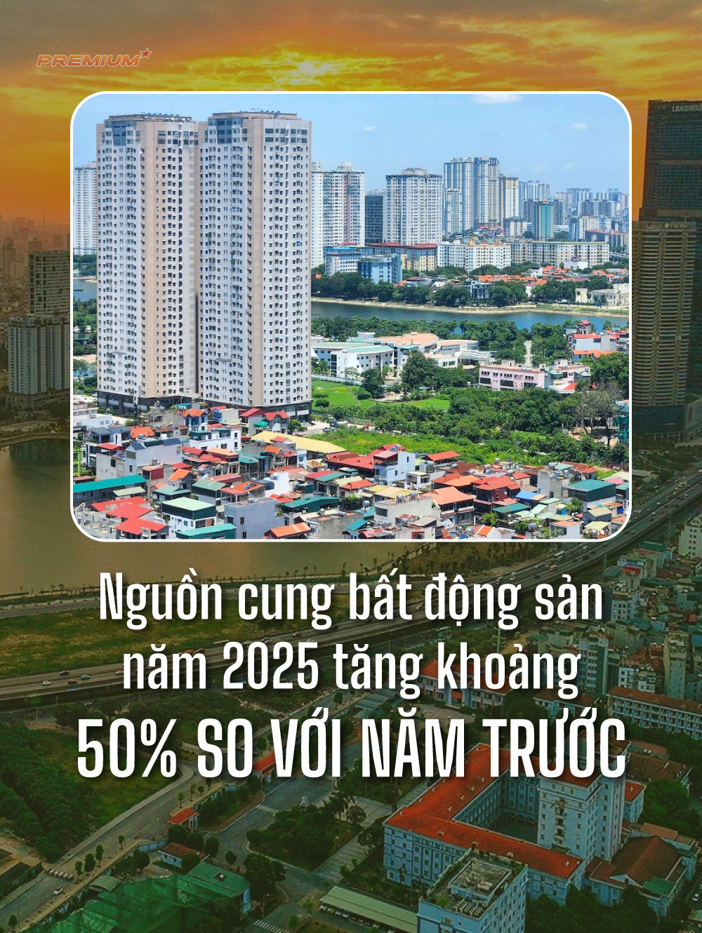 Theo dữ liệu nghiên cứu sơ bộ của Viện Nghiên cứu đánh giá thị trường bất động sản Việt Nam (VARS IRE), nguồn cung mới trong năm 2025 tăng khoảng 50% so với năm 2024.