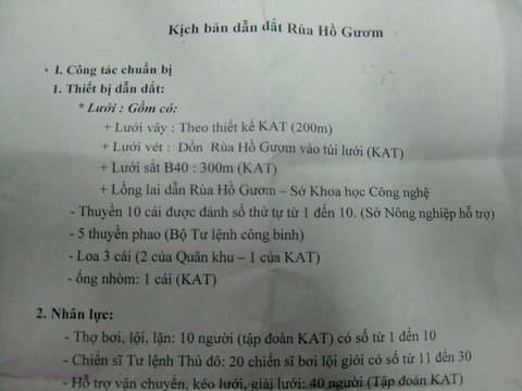 Kịch bản dẫn dắt rùa Hồ Gươm |