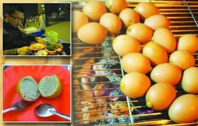 bán sẽ nướng lại bằng bếp than củi. Theo một chủ quán bán trứng nướng Thái Lan