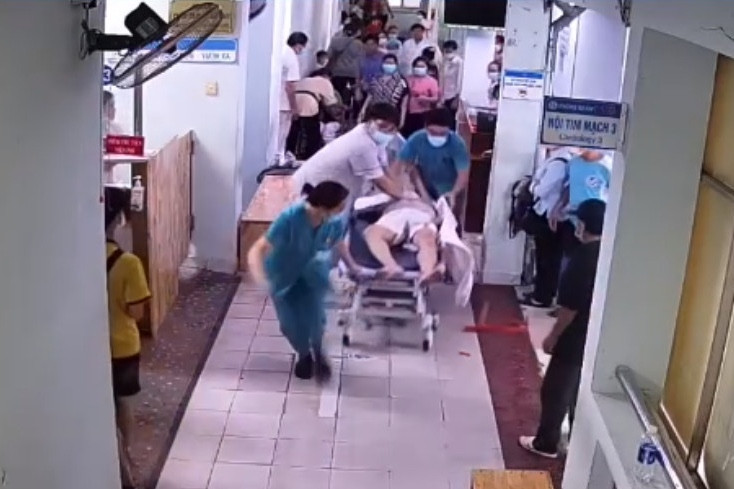 Theo đó, trong lúc ngồi chờ khám bệnh, ông T. bất ngờ ôm ngực và gục ngã trên ghế. Người dân phát hiện đã tri hô. Nhân viên y tế tại hiện trường xác định ông T. ngưng tim ngưng thở, lập tức tiến hành cấp cứu tại chỗ, xoa bóp tim và chuyển đến Khoa Cấp cứu trong vài phút.