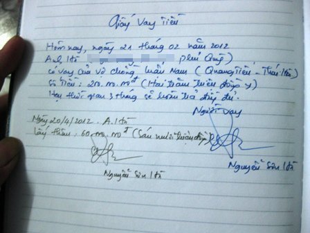 Giấy vay tiền Nguyễn Sơn Hà viết với người cho vay.