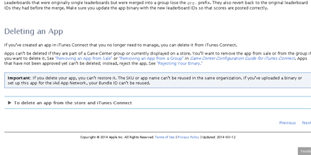"Nếu bạn xóa ứng dụng của mình, bạn sẽ không thể khôi phục nó", tài liệu này viết rõ. "Tên ứng dụng cũng như SKU sẽ không thể được tái sử dụng bởi cùng một tổ chức".