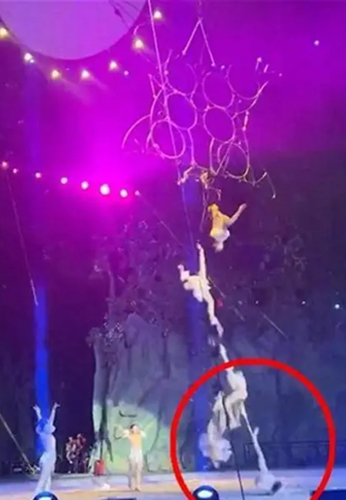 Vụ tai nạn xiếc xảy ra tại thành phố Hạ Môn, tỉnh Phúc Kiến hôm 26/4. Khi nhóm 8 người đang trình diễn trên không, dây bảo hộ bất ngờ bị đứt. Ba người bất ngờ rơi xuống nền không có đệm đỡ. Một người trong số đó không qua khỏi do đầu bị chấn thương nặng.
