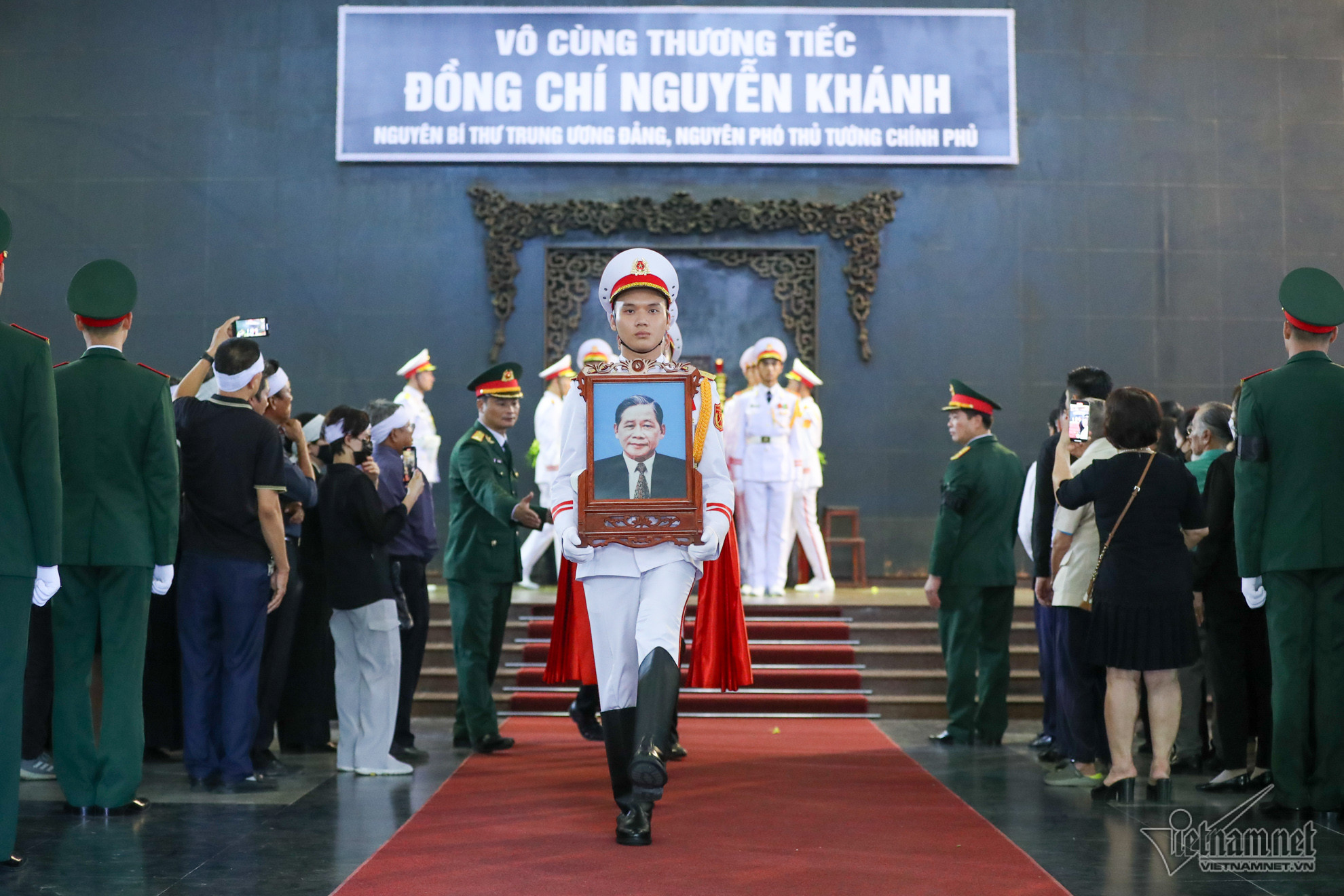 Tại lễ truy điệu, lãnh đạo, nguyên lãnh đạo Đảng, Nhà nước, MTTQ Việt Nam cùng gia quyến và đồng chí, đồng bào đã dành một phút mặc niệm vĩnh biệt nguyên Phó Thủ tướng Nguyễn Khánh.