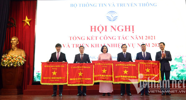 Cũng tại hội nghị, Bộ trưởng Bộ TT&TT Nguyễn Mạnh Hùng đã trao tặng Cờ thi đua của Bộ TT&TT năm 2021 cho 5 cơ quan, đơn vị thuộc Bộ gồm Văn phòng Bộ, Vụ CNTT, Cục Tần số Vô tuyến điện, Cục Thông tin cơ sở và Tạp chí TT&TT. Đây là những đơn vị đã có thành tích xuất sắc trong phong trào thi đua của Bộ TT&TT.