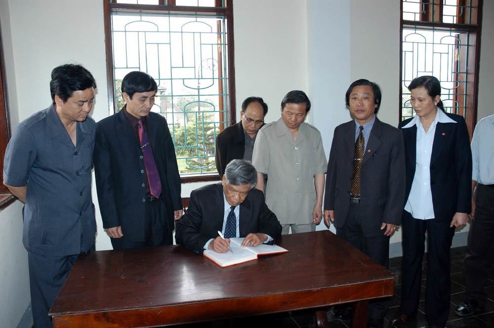| Nguyên Tổng bí thư Lê Khả Phiêu ghi sổ lưu niệm tại nhà Tổng bí thư Lê Hồng Phong. Ảnh: Nguyễn Khang |