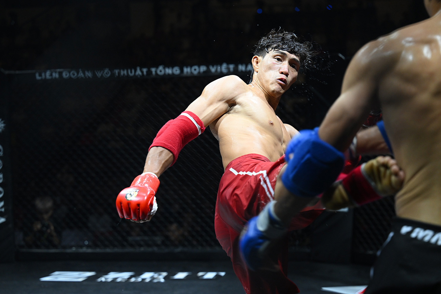 Huy Hoàng có thời điểm gây bất ngờ khi quật ngã nhà vô địch SEA Games 31 Nguyễn Trần Duy Nhất xuống sàn đấuNhưng sau đó Duy Nhất đáp trả bằng những cú đánh chính xác, uy lựcLối đánh tấn công dũng mãnh của Duy Nhất khiến đối thủ nhiều lần phải lùi quanh sàn đấu.Nguyễn Trần Duy Nhất thị uy sức mạnhSang hiệp 2, Huy Hoàng nhiều lần phải chạy quanh khán đài để né đòn trước khi xin thua trậnVới chiến thắng ở bán kết, Duy Nhất sẽ chạm trán đối thủ Võ Thành Trung Tín ở trận đấu cuối cùngNgôi vô địch đang chờ đợi tay đấm sinh năm 1989 ở phía trước"Chúng tôi sẽ biến MMA thành món ăn tinh thần giải trí hàng tuần đối với quý vị khán giả, cố gắng 1 tháng có ít nhất 1 hoặc 2 sự kiện, để người hâm mộ có thói quen xem những giải bóng đá vô địch châu Âu vào thứ 7, Chủ nhật thì sẽ xem MMA vào thứ 6 hàng tuần", thành viên BTC, MC Thành Trung nói. Dự kiến, vòng chung kết LION Championship 2022 sẽ diễn ra vào ngày 26/11 tới tại Đảo ngọc Phú Quốc. 16 võ sĩ tham gia 8 trận chung kết sẽ tranh chiếc đai vô địch với trị giá 200 triệu đồng cho người chiến thắng