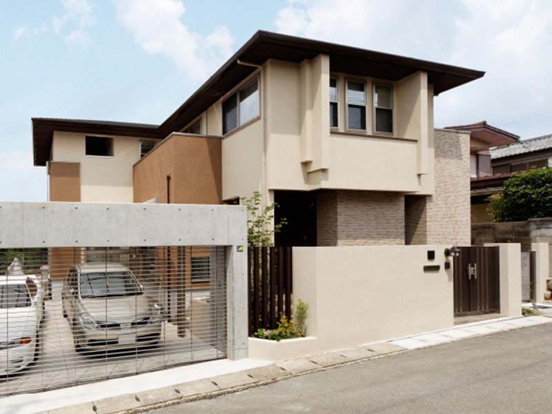 Nhà mái Nhật đan xen chút kiến trúc châu Âu thiết kế đơn giản nhưng vẫn hút hồn. Công trình kết hợp hài hòa giữa thiết kế nhà ở và chỗ đậu xe ô tô rộng rãi.