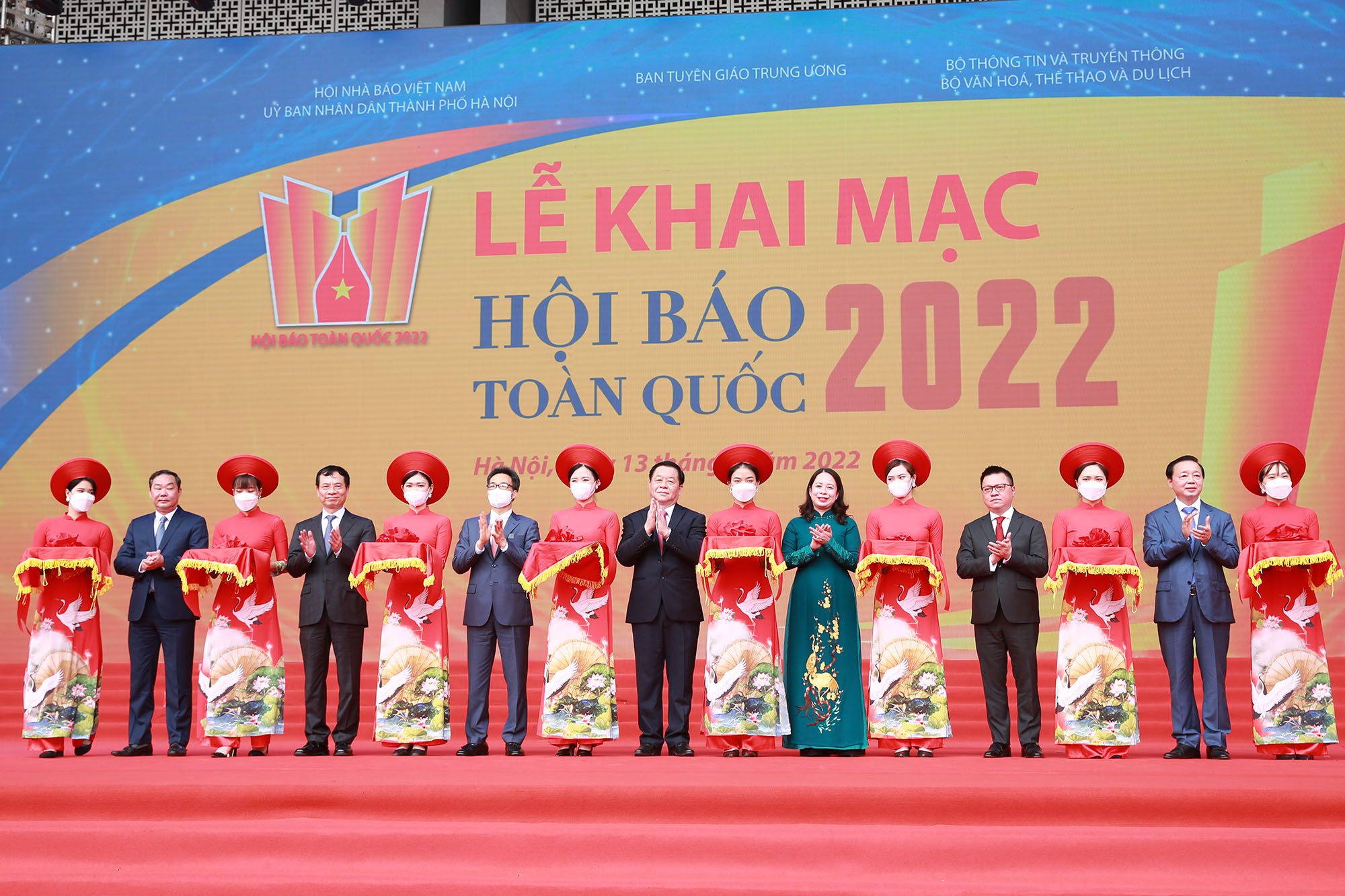 Lễ khai mạc Hội báo toàn quốc 2022 với chủ đề "Báo chí Việt Nam đoàn kết, chuyên nghiệp, hiện đại và nhân văn" diễn ra sáng nay (13/4) tại Hà Nội.
