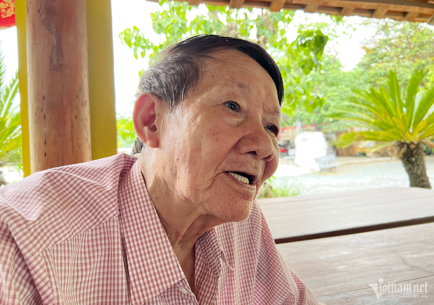 Di ảnh nhà báo Vũ Hiến (giữa). Nhà báo Trần Văn Hiền đang trao đổi với PV VietNamNet.