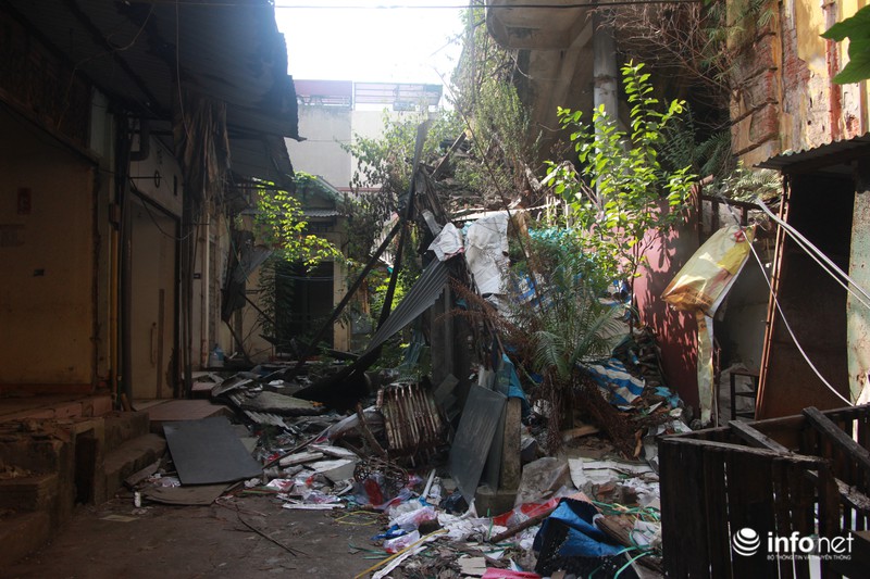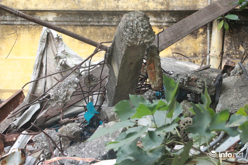 Khung cảnh bừa bộn, rác thải kèm những vật dụng hư hỏng, đổ nát nằm ngổn ngang chưa được thu dọn từ sau ngày nó bị đổ sập.