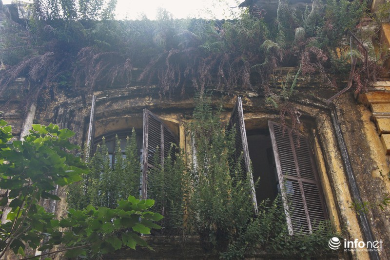 Phía bên trên các cửa sổ vẫn mở, xung quanh cây cỏ mọc lum tùm.