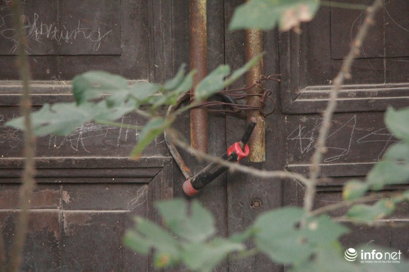 Cừa chính của căn nhà này đã khóa ngăn tránh mọi người vào vì có thể nó đổ sập bất cứ khi nào.