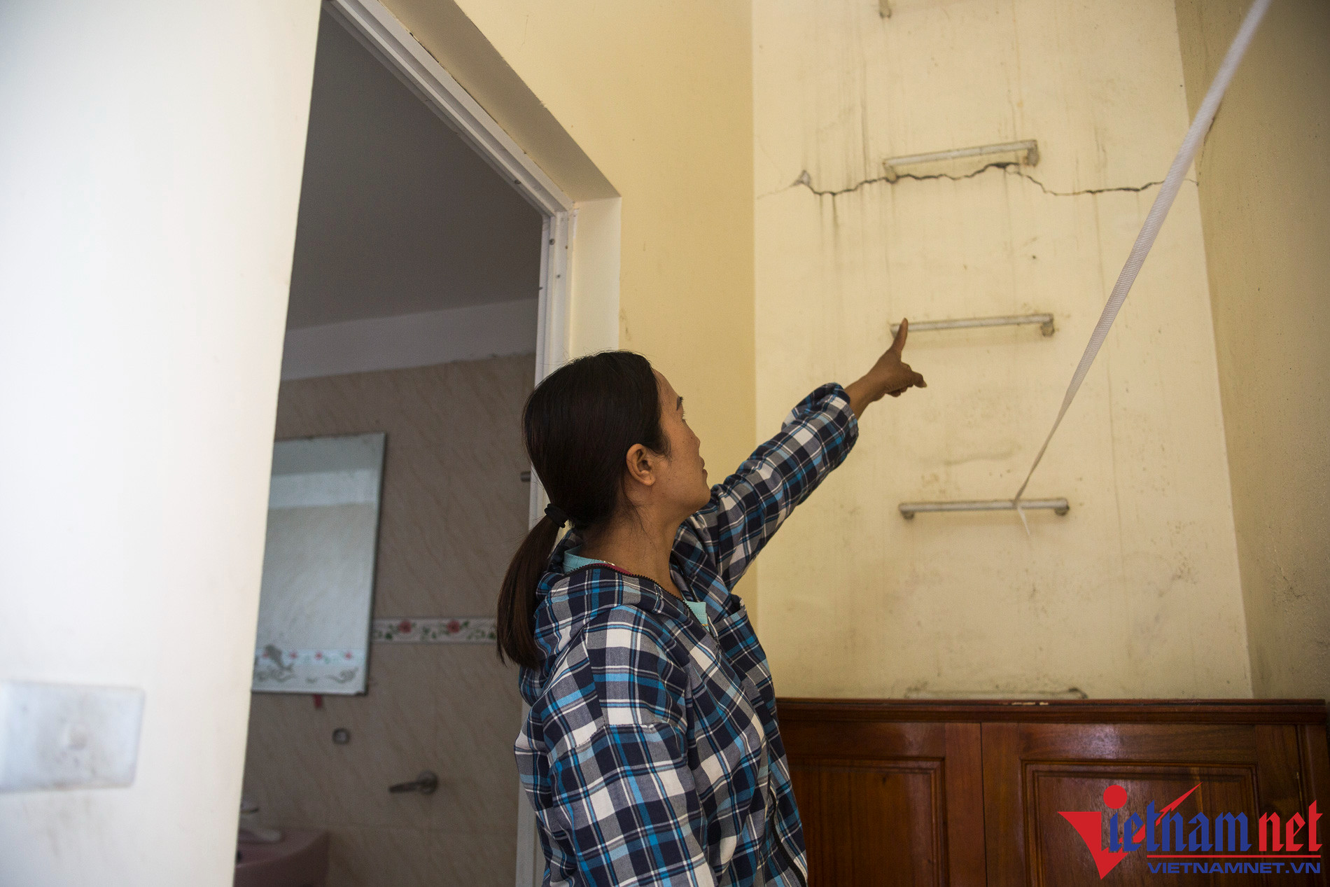 “Từ tháng 11 năm ngoái họ nổ mìn để làm đường khiến nhà tôi bị nứt hết, nhất là ở tầng 2”, bà Thủy chia sẻ.