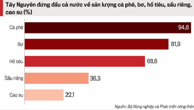 Theo Bộ Nông nghiệp và Phát triển nông thôn (NN&PTNT), 10 tháng đầu năm 2022 xuất khẩu nhóm nông sản chính đạt trên 18,8 tỷ USD, tăng 7,2% trong đó có nhiều mặt hàng giá trị cao tập trung chủ yếu tại khu vực Tây Nguyên như: cà phê (chiếm 94.8%), bơ (chiếm 81.9%), hồ tiêu (chiếm 68.6%), sầu riêng (36.3%), cao su (22.1%)…Với nhiều mặt hàng nông sản có giá trị hàng tỷ đô la, đây sẽ là cơ hội lớn cho các nhà đầu tư sản xuất, đầu tư dịch vụ tại khu vực.