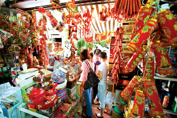 9 giờ sáng chủ nhật ngày 23.1, cửa hàng bán thực phẩm Việt Hằng (số 237 Lý Tự Trọng, quận 1) tấp nập người đến mua sắm. Căn nhà này bề ngang rộng chừng 4m, sâu 20m, nhưng hàng hoá xếp ken kín từ sâu bên trong ra tới tận vỉa hè, chỉ trừ lại lối đi nhỏ xíu để khách len vào chọn hàng.