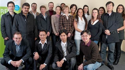 | Phạm Văn Quân (hàng đầu, thứ hai từ trái sang) cùng các nhà khoa học đoạt giải. |