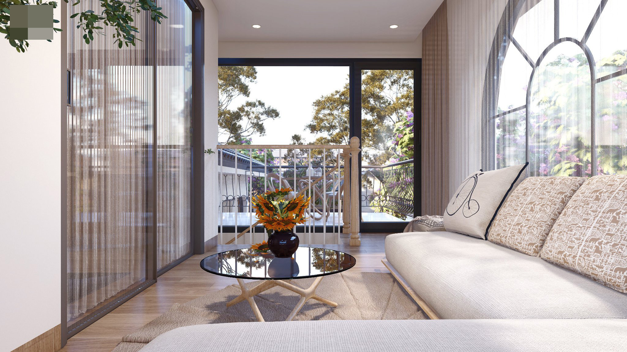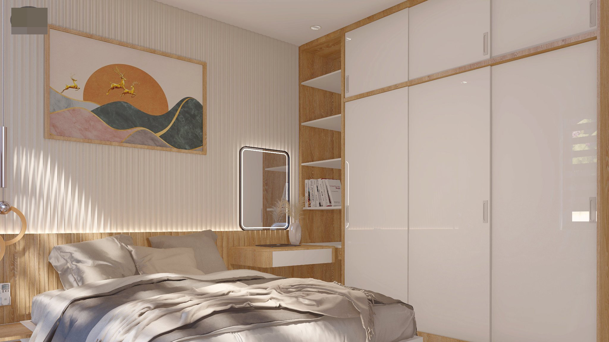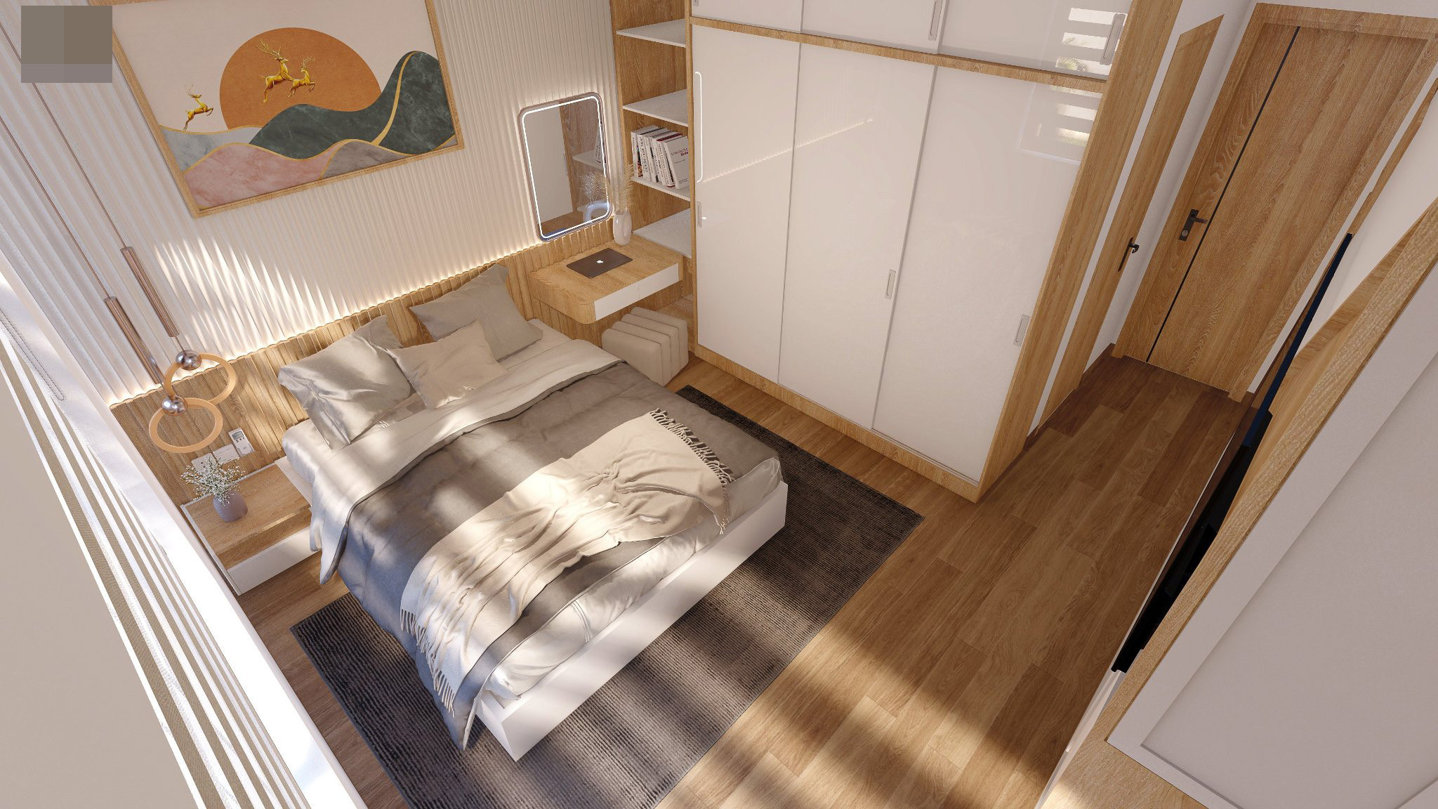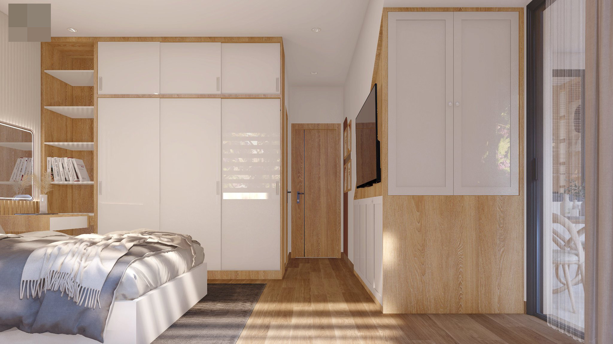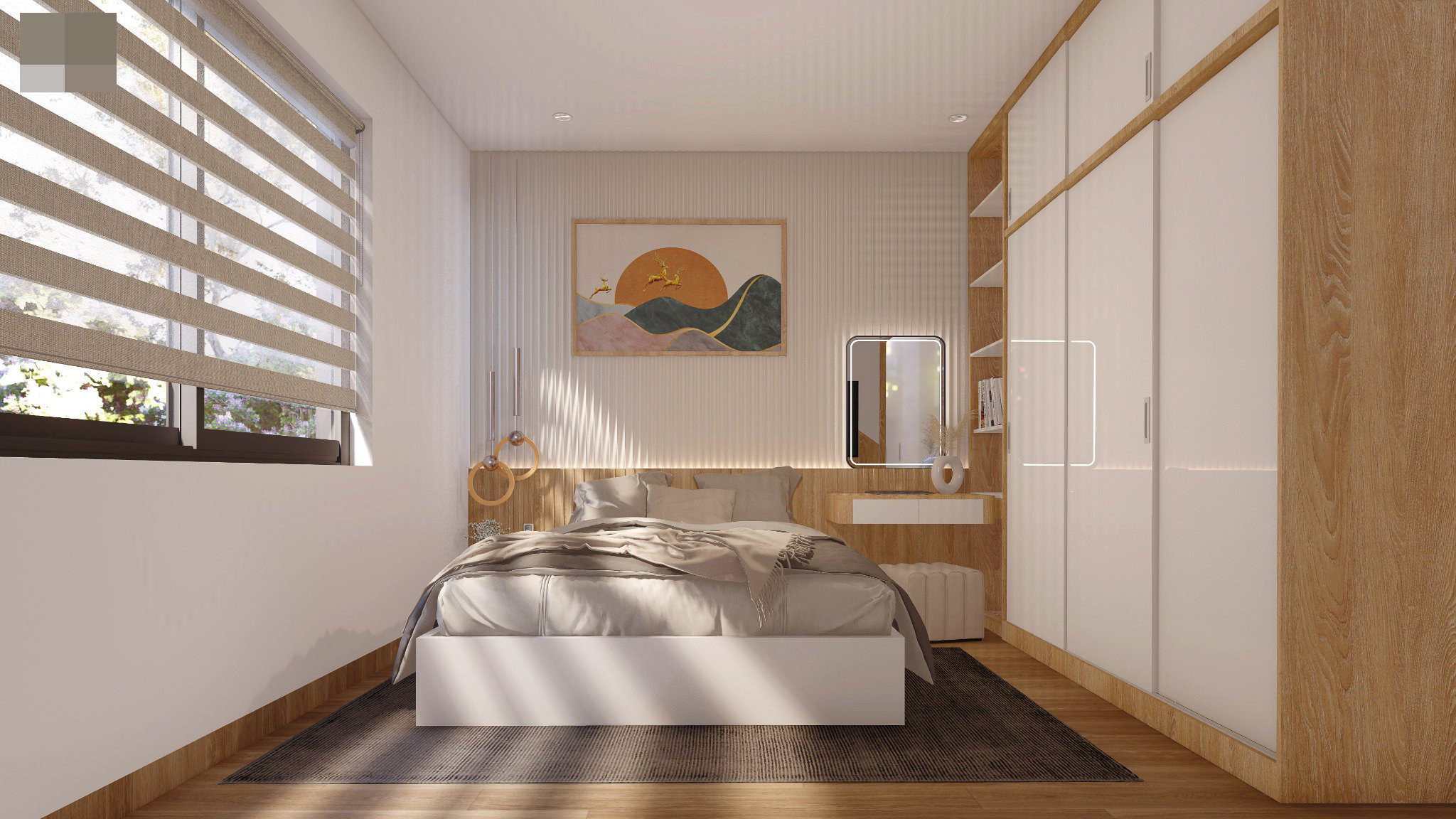 Phòng ngủ được bố trí cửa sổ hướng Nam để hút gió, tạo không gian mát mẻ.