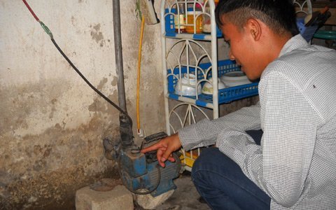 ![]() Nhiều gia đình phải khoan giếng để lấy nước sinh hoạt, thậm chí phải dùng nước sông để tắm giặt thay nước máy. |