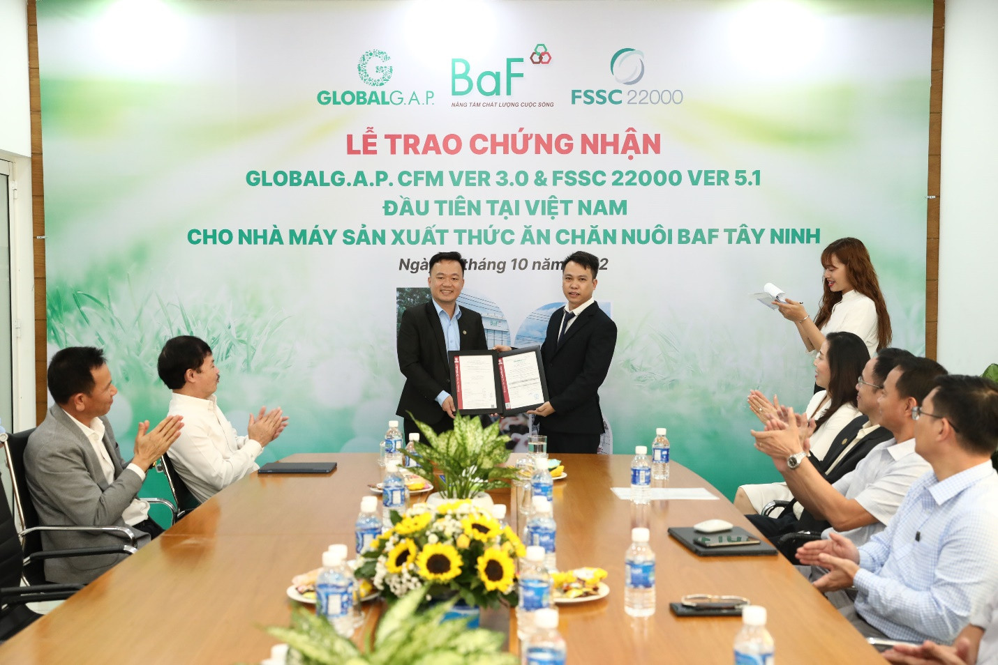 BaF đã trở thành đơn vị tiên phong ở Việt Nam đạt cùng lúc 2 chứng nhận được đánh giá là tiêu chuẩn cao nhất về hệ thống quản lý chất lượng trong sản xuất thức ăn chăn nuôi, áp dụng trên toàn thế giới. BaF cũng nhận được sự tư vấn và đồng hành từ Tổ chức Tài chính quốc tế IFC - Thành viên của Nhóm Ngân hàng Thế giới (World Bank Group) trong dự án này.