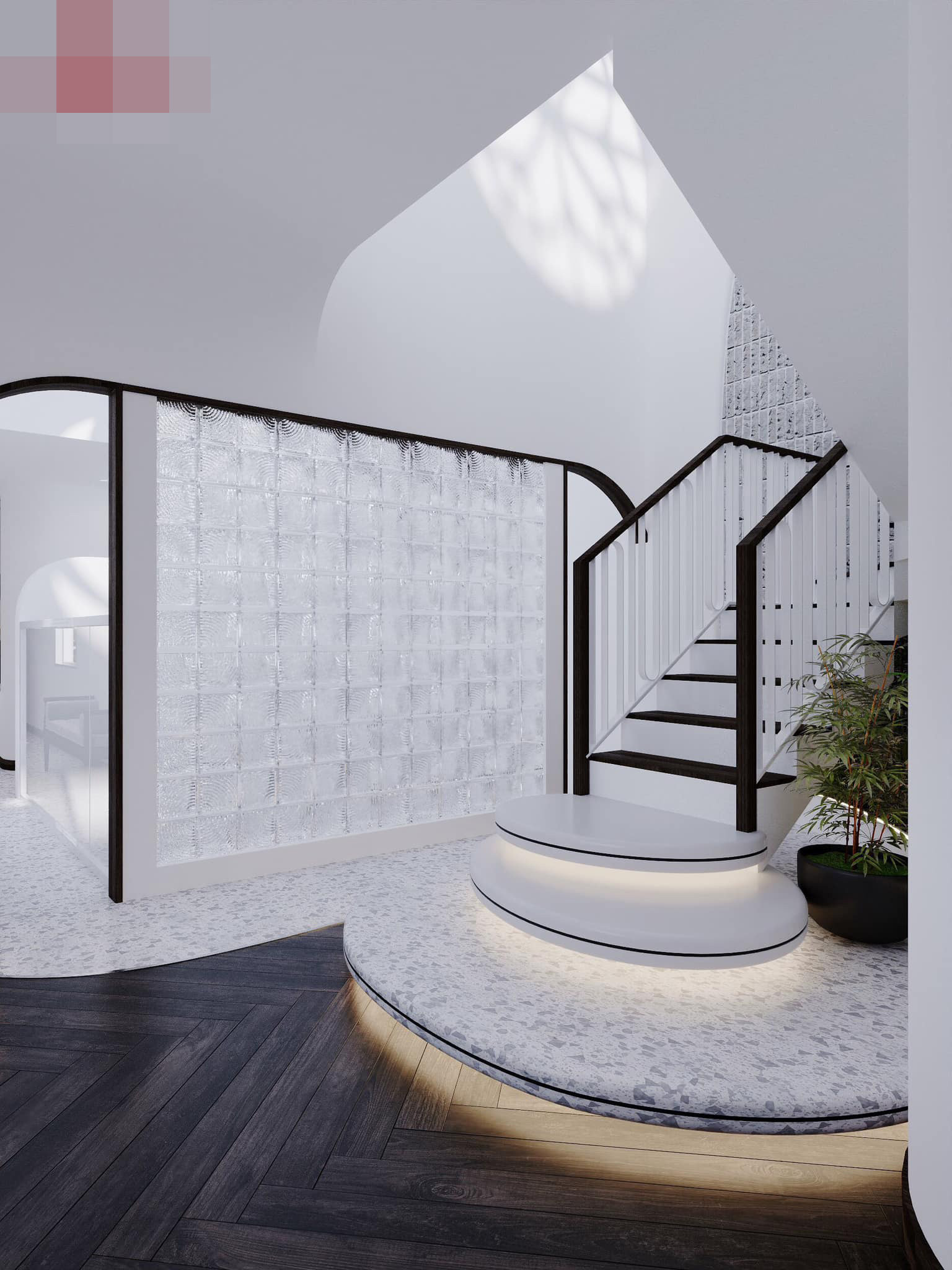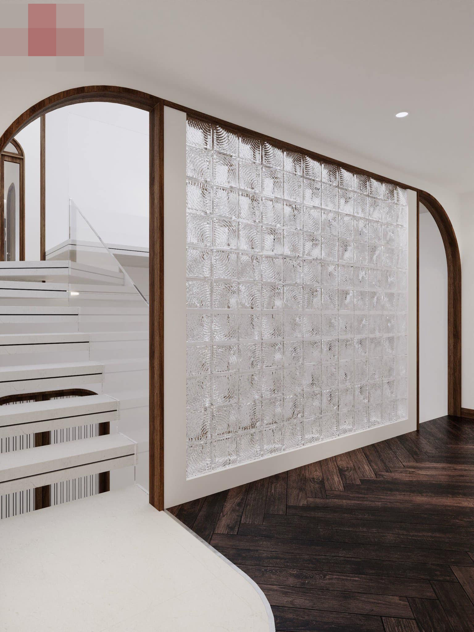 Kiến trúc sư dùng gạch kính để làm vách ngăn phòng nhưng vẫn đảm bảo yếu tố ánh sáng, riêng tư cho nhà.