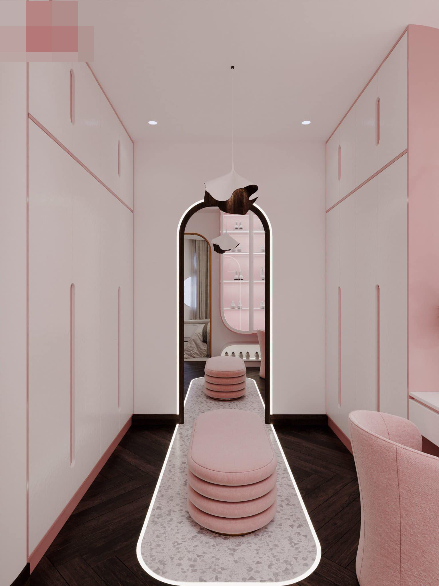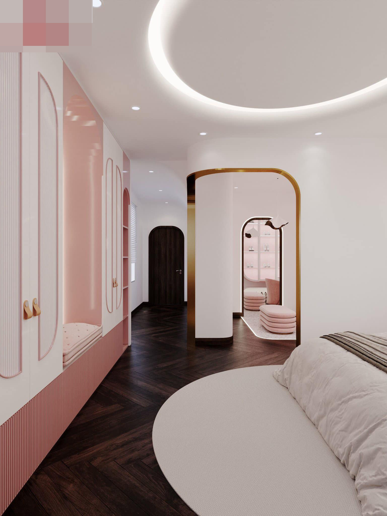 Phòng bé gái còn có khu thay đồ riêng sang trọng như khách sạn 5 sao.