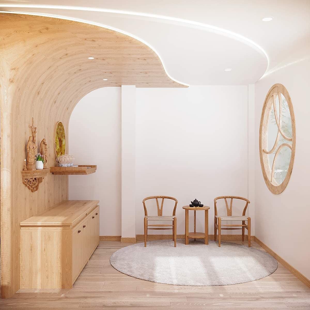 Phòng thờ là sự giao thoa của kiến trúc xưa và hiện đại.