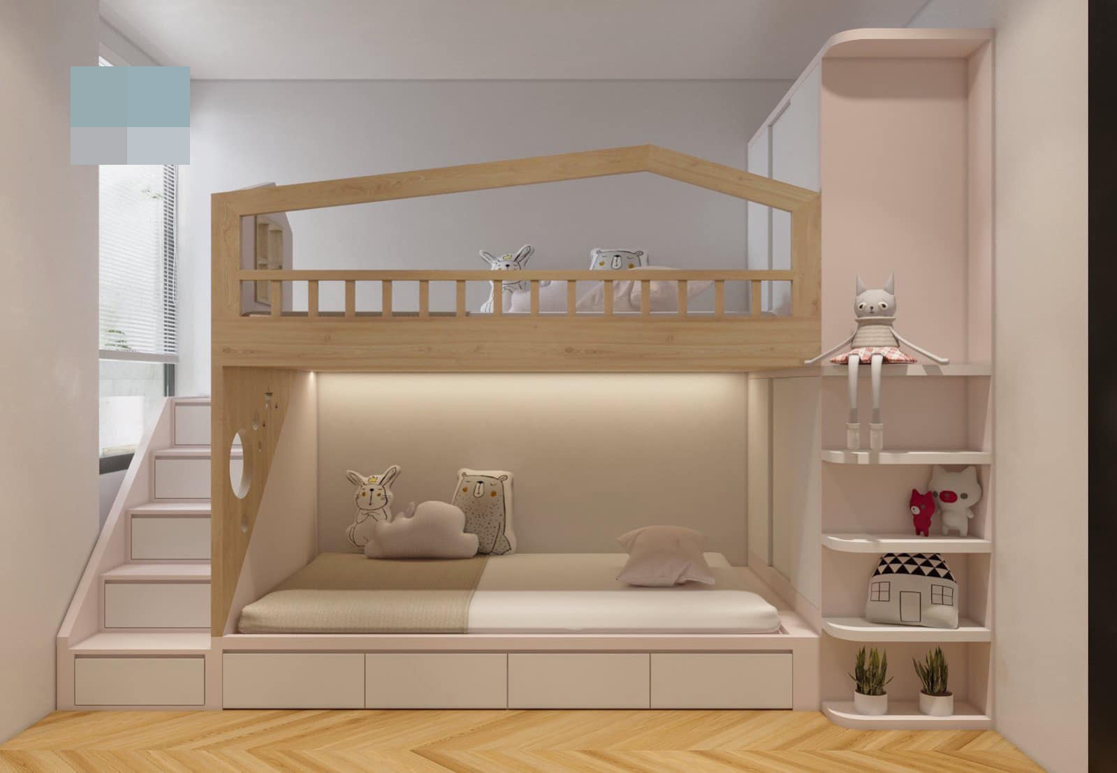 Phòng ngủ em bé tone pastel xinh xắn, không lạm dụng màu sắc nhưng rất ấn tượng.