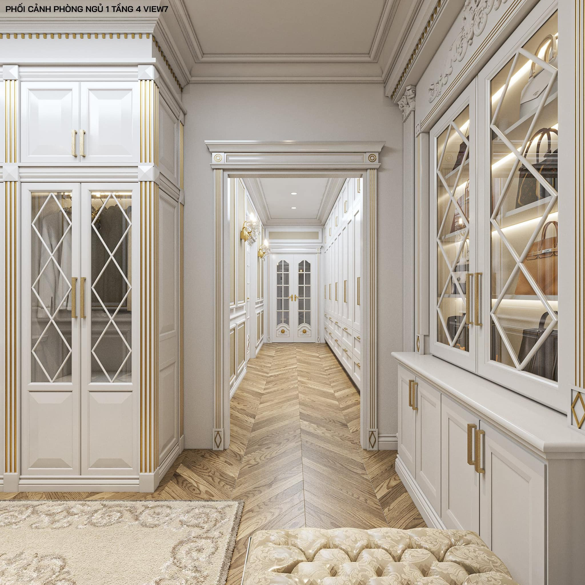 Sảnh dẫn vào phòng ngủ đi qua hệ tủ nhiều ngăn kéo. Thiết kế giúp gia chủ cất giấu được nhiều đồ, cho nhà luôn ngăn nắp.