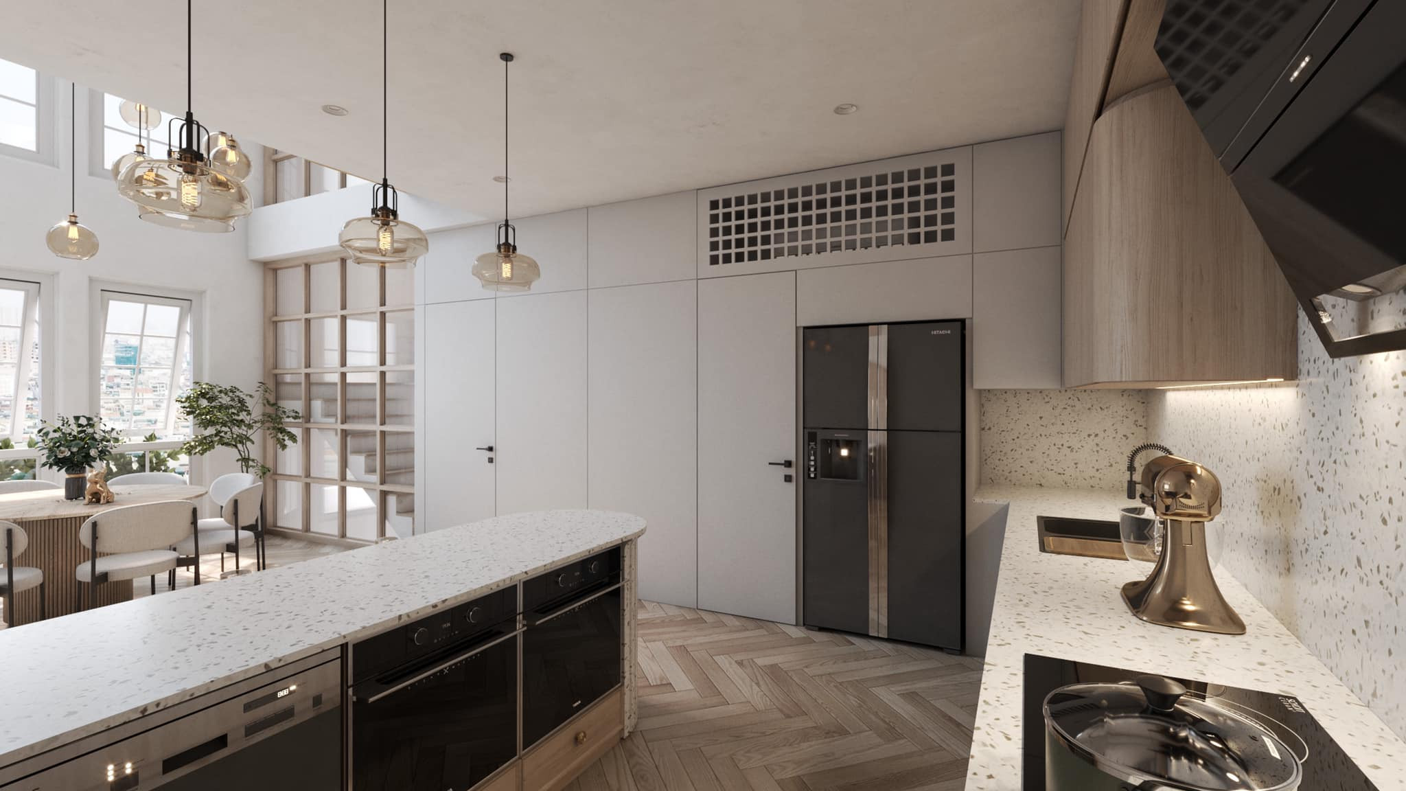 Mặt tiền nhà 6m và chiều sâu 8m. Có lối đi riêng cho chủ nhà. Anh tiết lộ, gia chủ là một nhạc sĩ nổi tiếng, sở hữu những bản hit hay. Nhạc của anh giao thoa giữa hiện đại và âm hưởng dân gian. Vì vậy, gia chủ đặc biệt quan trọng về cảm xúc mà không gian mang lại. Gia chủ yêu cầu thiết kế hướng nhiều vào chiều sâu, ví dụ như yêu cầu phẳng hoá mọi thứ thuộc khu bếp, giấu cửa, làm mọi thứ ngăn nắp và sạch sẽ về hình khối. Đồng thời, tạo ra được nguồn năng lượng tích cực, khơi gợi xúc cảm.