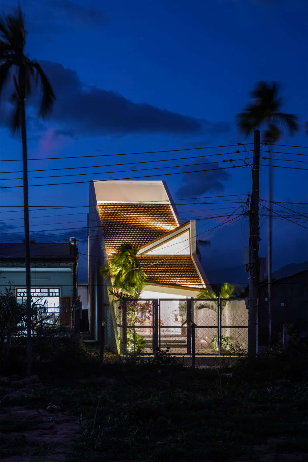 Ánh sáng tự nhiên được đưa vào nhà theo nhiều cách khác nhau, chẳng hạn như nâng cao phần mái phía trước để hấp thụ ánh sáng dịu nhẹ từ phía đông. Giếng trời phía trên cầu thang xoắn lên tầng 2. Khu vườn mở 2 tầng đồng thời là không gian xanh và tạo sự lưu thông không khí trong nhà. 3 mái nhà được ngăn cách bởi các khe hở dọc. Kiểu mái dích dắc này giúp dễ dàng thoát nước mưa.