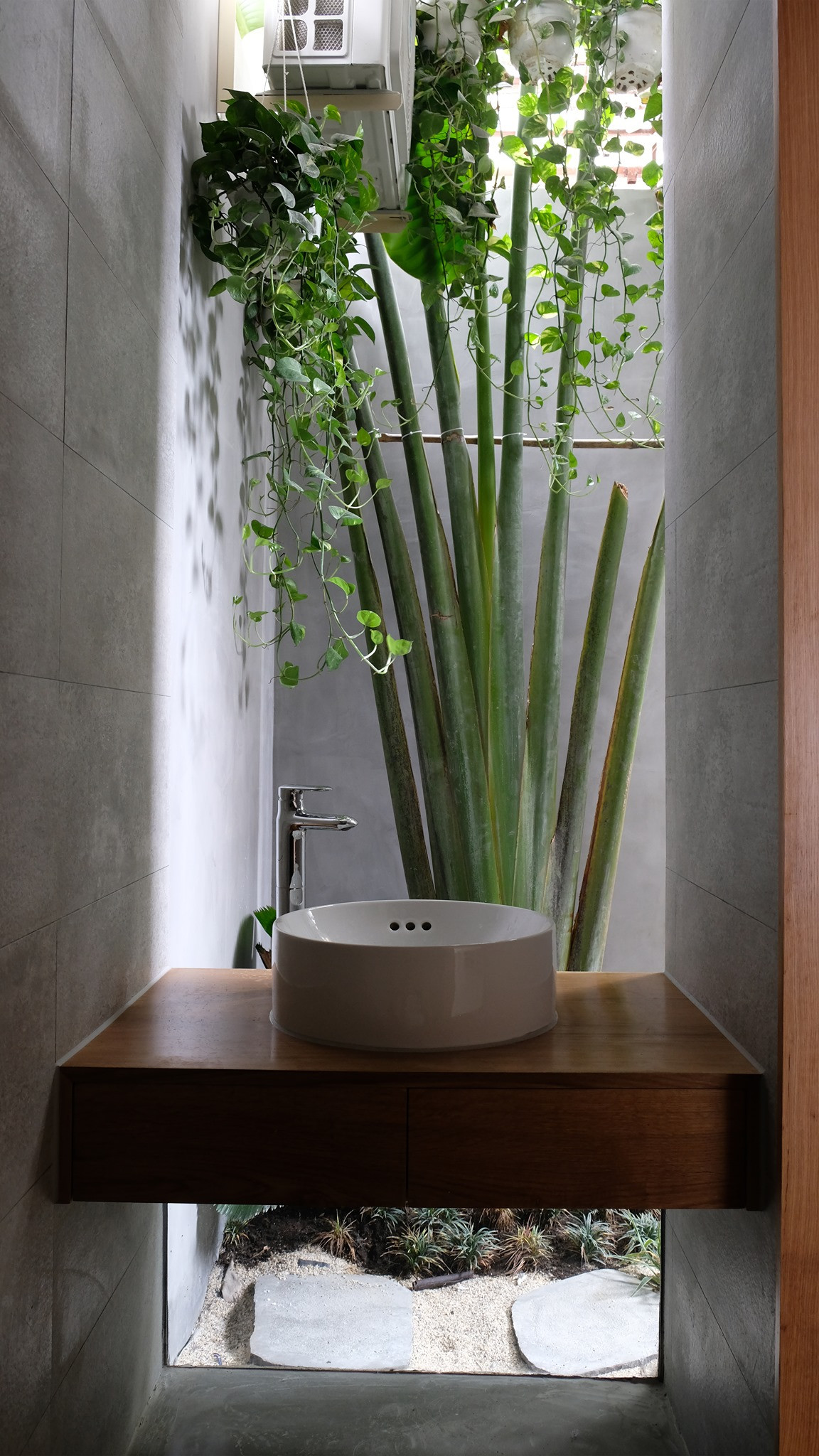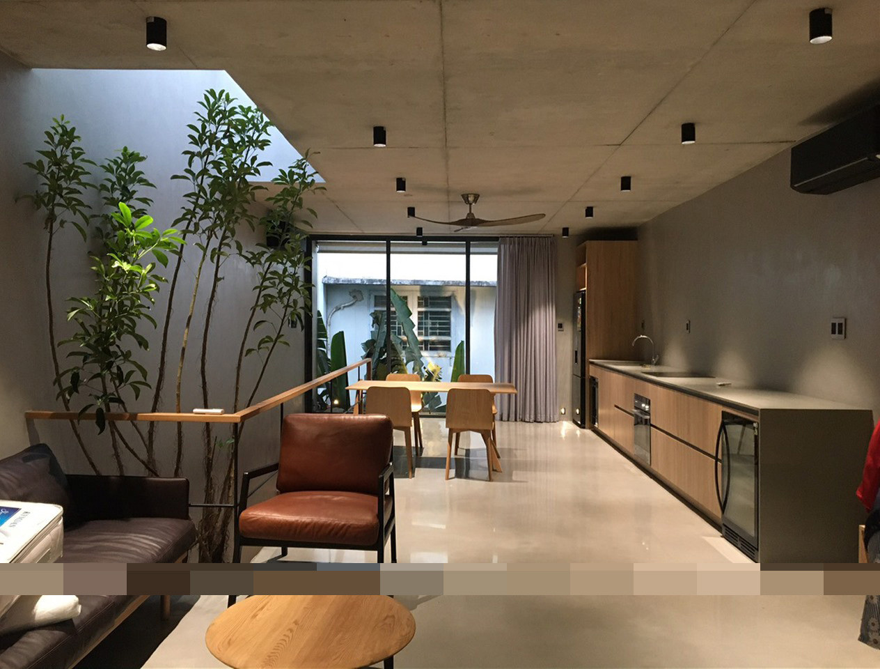 Để hạn chế ảnh hưởng của nắng chiều, anh cùng cộng sự bố trí thật nhiều cây xanh trước các ô cửa, vừa tạo được không gian xanh, giảm tiếng ồn mà còn tạo cho công trình thêm riêng tư, không gian nửa kín, nửa hở tạo độ sinh động cho không gian cũng như giúp cho người ở thêm thoải mái.