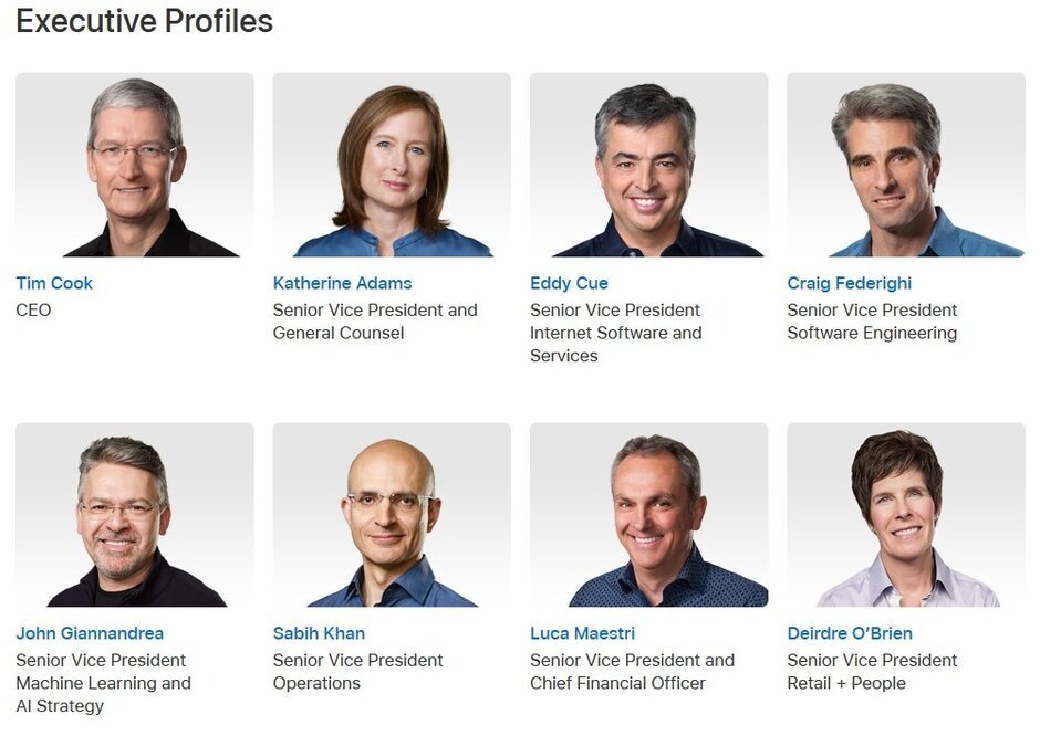 Jony Ive không còn xuất hiện trên website giới thiệu lãnh đạo Apple. Ảnh: PhoneArena |